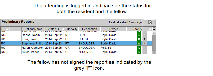 In the following example, a resident has approved a report. The report is now ready for the fellow to review.