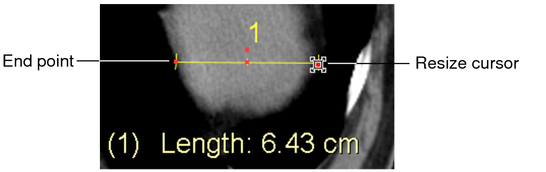 Use linear measurements to measure straight lines. When measuring straight lines, you can use reference lines to measure areas in relation to other areas or measurements in relation to other measurements on the same image. Additionally reference lines are useful when you want to measure an area without drawing directly over it or when verifying that you measured the longest diameter of an area of interest.