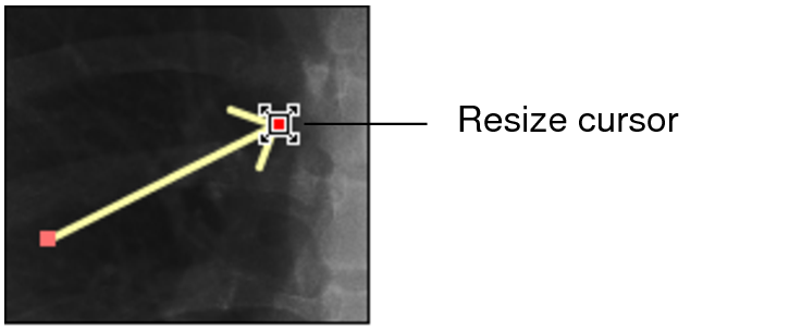 To adjust the angle or resize the arrow, place the cursor over the head or tail. When the resize cursor appears, click and drag.