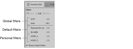 Global filtersCreated by your PACS administrator and available to all radiologists at your facility. You can make them visible by adding them to the worklist Filters list. Global filters always appear above personal and default filters in the Filters list.