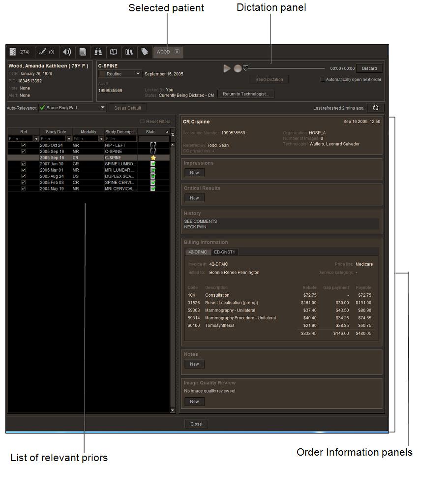 HistoryThe patient’s background and reason for the study requisition. This is communicated through HL7 from a RIS or other system. This information is read-only.