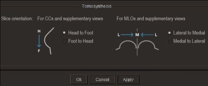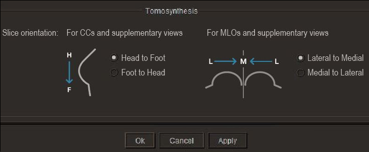 • For MLO series and its supplementary views, choose From Lateral to Medial or From Medial to Lateral. The default for MLO slice positioning is From Lateral to Medial.