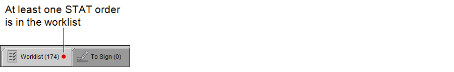 You can quickly see if STAT orders are waiting for dictation without needing to return to the worklist. A red icon appears in the Worklist tab when there is at least one STAT report.