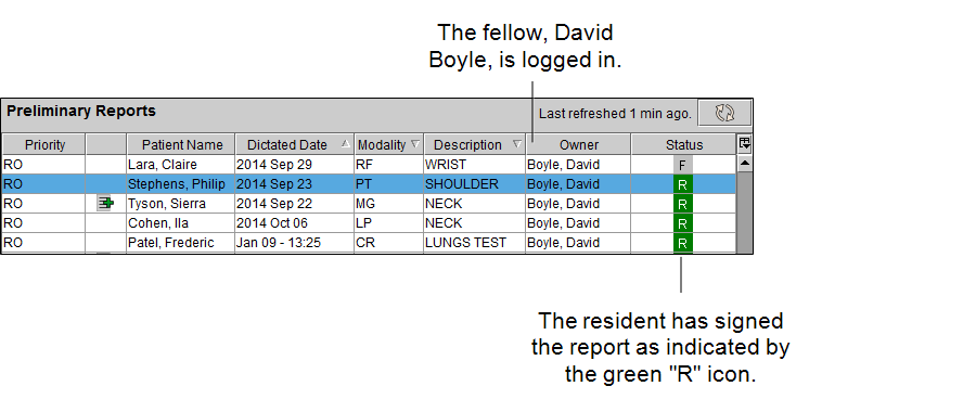 In the following example, a resident has approved a report. The report is now ready for the fellow to review.